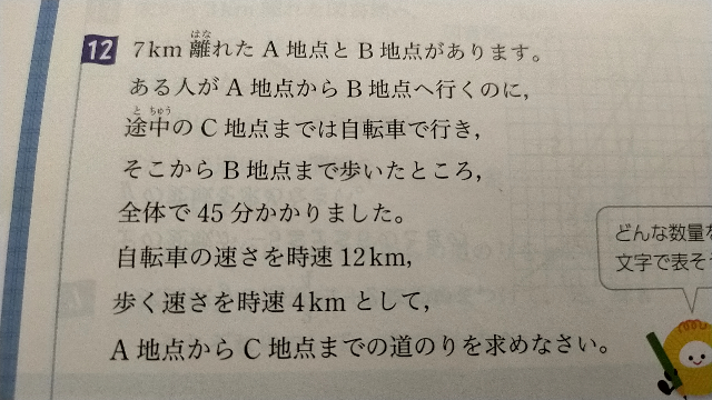 この問題の解き方教えてください。 - AからCまでの時間をX、Cから - 7km 自転 車で